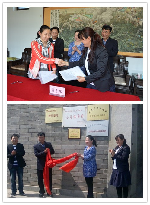 与小站练兵园共建“社会主义核心价值观实践基地”的签约仪式在小站练兵园举行,小站镇副镇长梁广炬、天津红山文化博物馆馆长张鹏、练兵园园长李静、院党委书记徐颖、副书记王爱敏、教工党支部委员、学生代表等出席签约揭牌仪式。