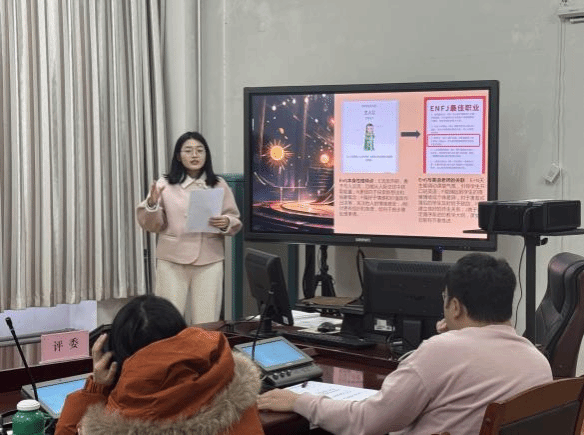 在职业规划展示环节,选手们结合外语专业特色与个人兴趣特长,通过PPT生动呈现了自己对教育、翻译、国际交流等不同职业领域的认知与探索:有的选手聚焦教育领域,立志成为一名优秀的外语教师,详细规划了从考取教师资格证到深耕教学实践的成长路径;还有的选手专注翻译领域,明确了深耕笔译、口译的职业方向,并制定了系统的能力提升计划。