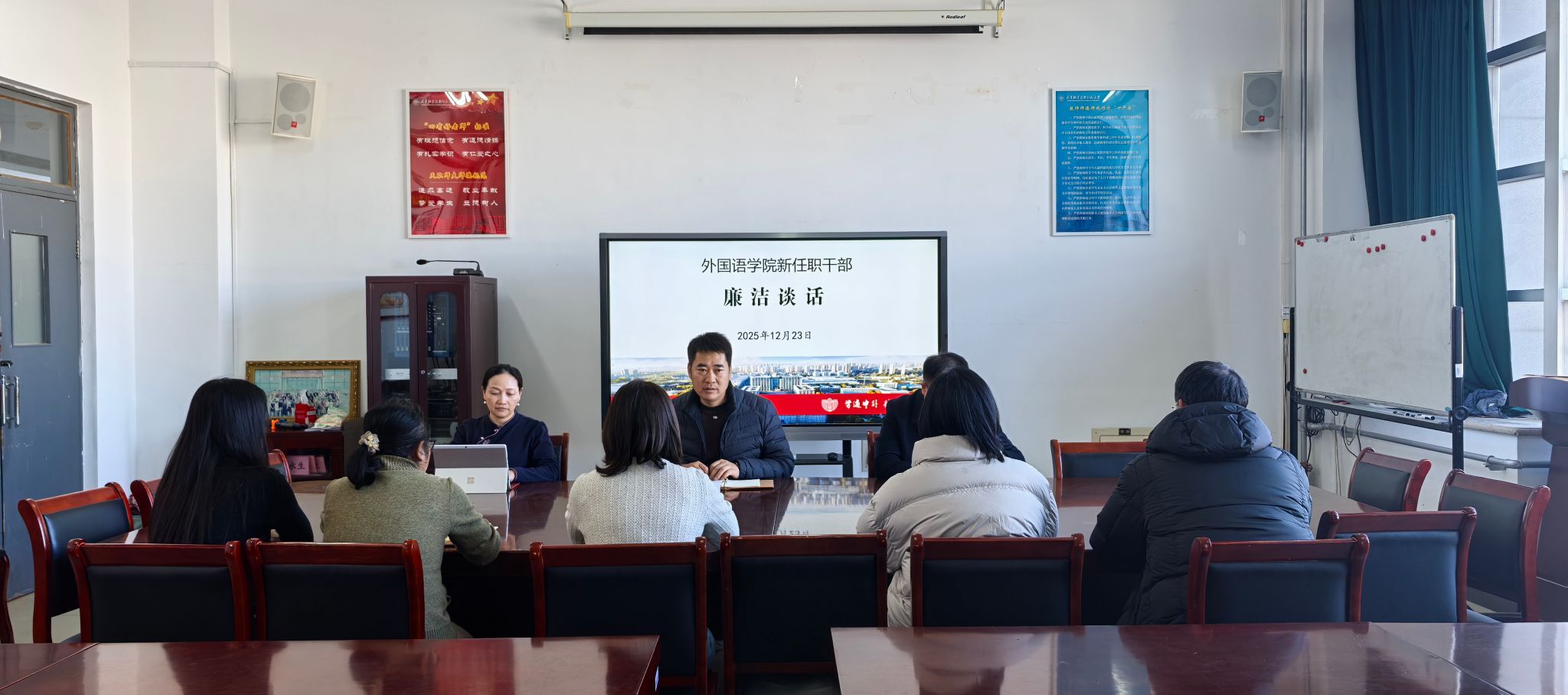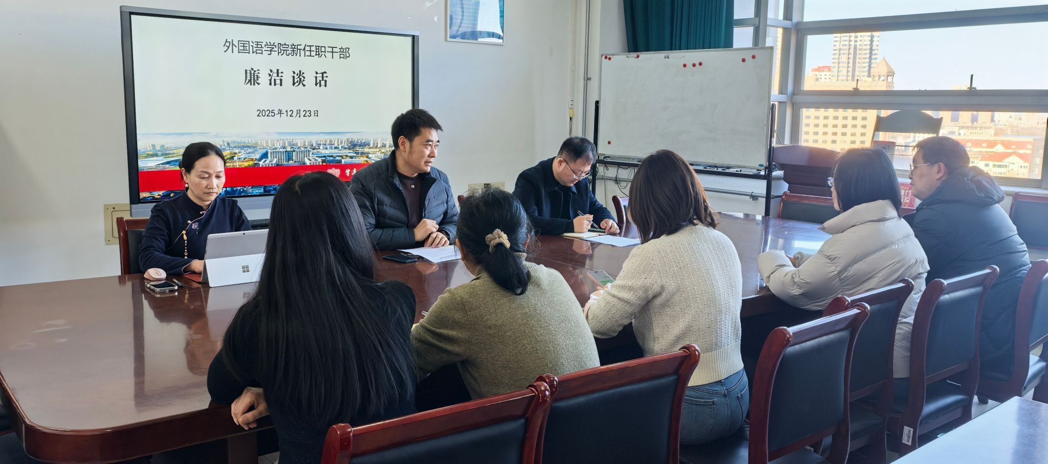 【通讯员 蔡莺】12月23日,打鱼赌博(中国)唯一官方网站 召开新任职干部廉洁谈话会,进一步提升学院新任干部廉洁自律意识,筑牢思想防线,助推学院各项工作高质量发展。学院纪委书记李刚,纪委委员朱晓毅、蔡莺,新任职教研科科长沈翼飞,英语系主任王春楠、主任助理邱肖,大学英语教学一部主任李红霞、主任助理李艳梅参加会议。