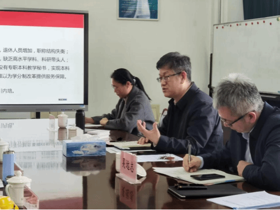 院长翟风杰围绕党建引领、教育教学、师资队伍、学科科研、学生管理、社会服务及“十五五”规划工作思路等进行了全面汇报。与会教师代表围绕人才引育、产教融合、学科竞赛、校园文化等方面建言献策。校领导认真听取意见、积极交流互动,切实把调研过程变成密切联系师生、破解发展难题、践行正确政绩观的生动实践。